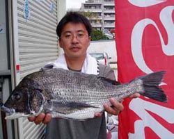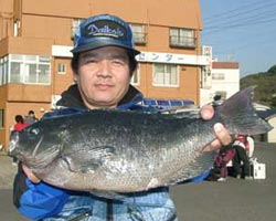 | 11月15日、大野さんは宮崎港河口にて、50cmオーバーの良型チヌを釣り上げた。 |