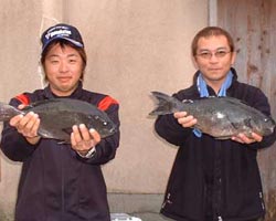 | 11月15日、大森さん 48.5cm 1.6kg、牧野さん 45cm 1.3kgを頭にクロを2人で15匹と大漁! |