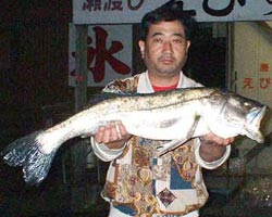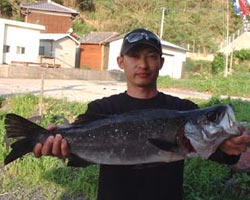 | 5月5日、前原市の山崎さんは仮屋湾の波止にて、80cm 4.5kgのスズキ釣り上げた。 |