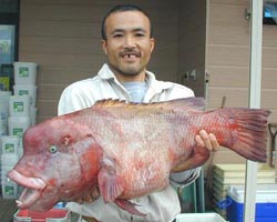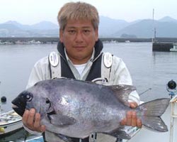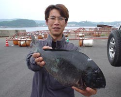 | 5月18日、中島にて西都市の松浦さんは、63cm、4.6kgの見事なイシダイを釣り上げた。清栄丸では2年ぶりの、4kgオーバーだった。また、この釣果が、松浦さんの自己記録と清栄丸のイシダイ記録となった。 |