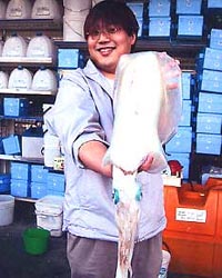 | 5月3日、つり源の中野店長は陸っぱりで2.8kgのアオリイカを仕留めた。 |
