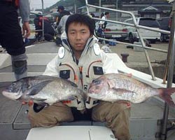 | 6月21日、島内さんは50cmのマダイと50cmのチヌ、40cmのクロを釣り上げている。 |