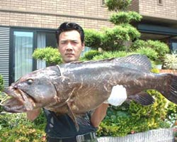| 6月28日、大分浦島会の梅野さんは、100cm 18kgのみごとなアラを仕留めた! |