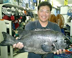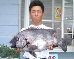 | 6月6日、原島さんは鶴見大島周辺にて、50cm、2.0kgの良型クロを釣り上げた。 |