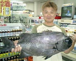 | 8月2日、平戸の田爪さんは、阿値賀島にて、79.0cm 9.85kgのカンダイをゲット! |