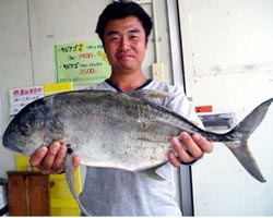 | 8月24日、南郷水島3瀬にて宮崎市の市原さんはルアーにて良型ヒラアジ 60.0cm 2.84kgをゲット! |