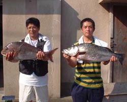 | 8月24日、吉良さんと吉良さんのおじさんは、平スズキ 83cm 5.7kgと、マダイ 65cm 3.4kgを釣り上げた。 |