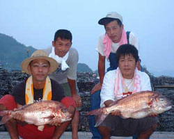 | 9月17日、佐賀の服巻さんは大瀬にて、40cmクラスのクロを4匹、35〜40cmのイサキを10匹釣り上げた。福岡の末次さんは、大瀬で30〜40cmのイサキを20匹と好釣果を上げた。 |