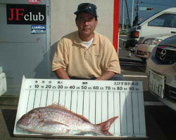 | 大分若潮会の太田さんは、81.0cm 5.6kgのマダイを釣り上げた! |
