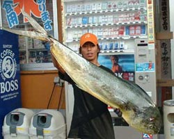 | 9月16日、坂本さんは自己新記録となる、138.5cm 14.0kgの超大型シイラをみごと釣り上げた! |