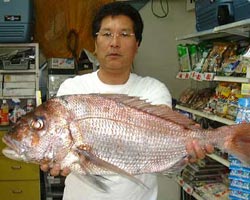 | 9月30日、一尺屋の筏にて、中島さんは74.0cm 5.5kgのマダイを釣り上げた。 |