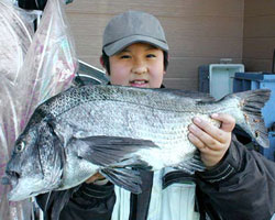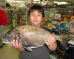 | 4月17日、須川君(11才)は、大野川河口にて、58.0cm 3.5kgのチヌを見事釣り上げた! |
