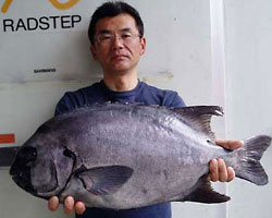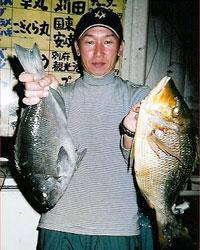 | 鹿児島県の甑島へ釣行。クロとフエフキダイを釣り上げた中上さん。 |