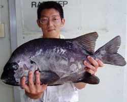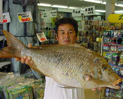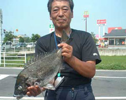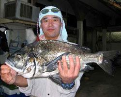 | 広島の菅原さんも52cmのチヌを釣り上げた。 |