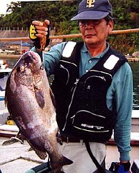 | 9月5日、壱岐に底物ねらいで釣行した糸島石酔会の成清さんは、朝のワンチャンスを逃さず、見事 60cm 3.4kgのイシダイを釣り上げた。