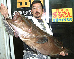 | 11月23日、重信さんは 112cm 14kgのイソマグロを、ハリス16号、マダイ針15号の天秤仕掛けで釣り上げました。