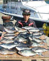 1.3kgを頭に、0.55〜1.0kgを20数匹釣り上げました。 |