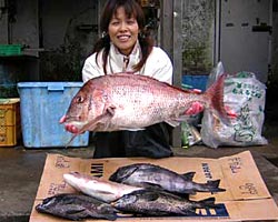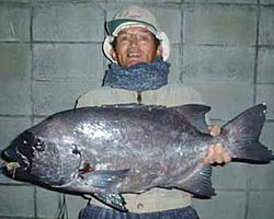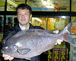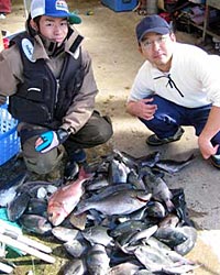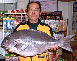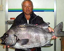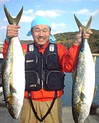| 12月14日、福岡ダイエーホークスの城島選手と寺原投手が尾上島平瀬に釣行され、オナガ 45cm