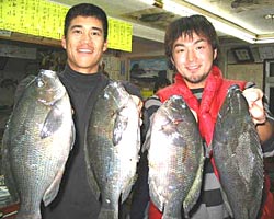 | 12月5日、森脇さんグループは黒島ケーソンにて、25〜41cmのクロを多数釣り上げました。大型のバラシも数回あり。 |