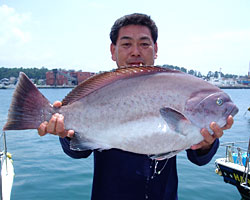 | 8月13日、釣好常連・植村さんは、オキアミ・キビナゴを餌に、見事アラをゲットです! |