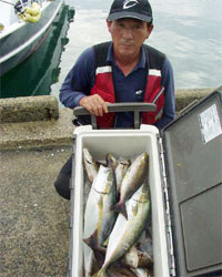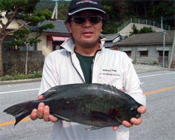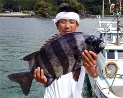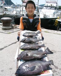 | 9月11日、小郡市の大原中学校3年生柳賢君(ダイワのテスター柳孝治氏のご子息)は尾上島西で2.5kgのイシダイほか、2kg級のイシガキダイ4匹の釣果。お父さんの指導で初めてイシダイを釣って大喜び。