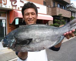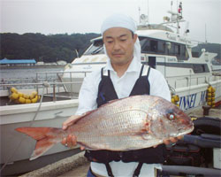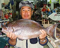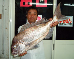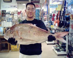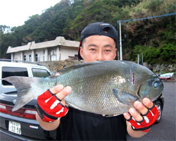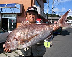| 9月2日、加部島にて野崎さんは、マダイ 76cm 4.5kgの好釣果! |