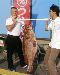 | 9月15日、大分浦島会所属の岩本さんは深島でアラ120.6cm 32.0kgをみごと釣り上げました。 |