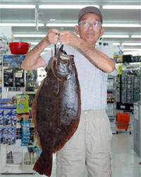| 9月23日、牧野さんは佐賀関での船釣りで、ヒラメ 73cm 3.5kgを見事仕留めた。 |
