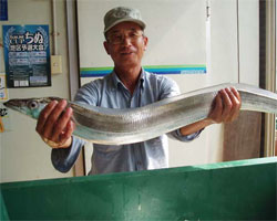 | 9月22日、石川さんは日南油津港にて、タチウオ釣りでみごと良型ゲット! 1m 1.0kgをはじめ、35匹の大漁でした。