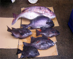 | 11月5日、壱岐に釣行した宮本さんは80cm 7.0kgの大型マダイのほか、イシダイと5匹のイシガキを手中にした。