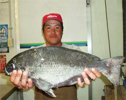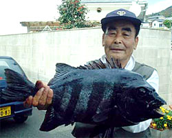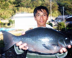 | 11月8日、福岡市の川畑さんは、宮ノ浦にて、クロ 54.2cm 2.4kgをハリス1.5号で見事釣り上げた。 |
