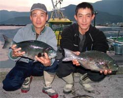 | 11月21日、沖磯にて、茶井さんと江口さんは、50.5cmと47.0cmの良型クロを見事ゲット! |