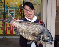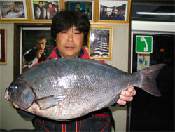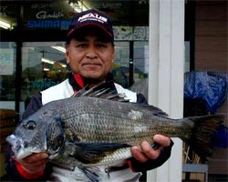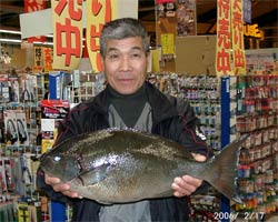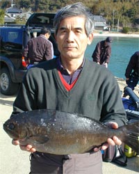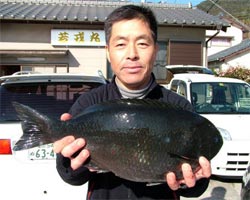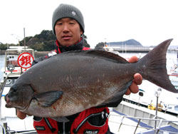 | 2月10日、熊谷さんは仮屋湾にて、チヌ 60.2cm 3.75kgの大物を見事ゲット! |