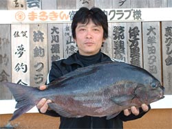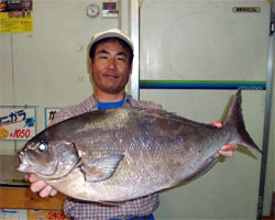 2月25日、甑島にて蔵原さん、オナガ 60.3cm 2.73kgの超特大をヒット!! |
