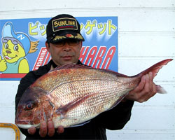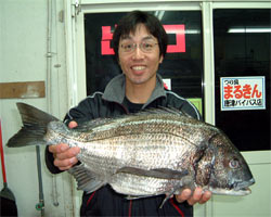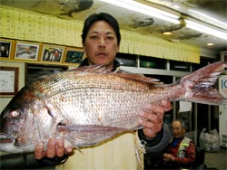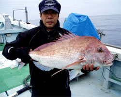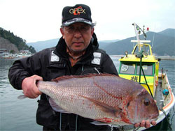 | 2月19日、竹田さんは良型のマダイ5.5kgを見事に釣り上げました。 |