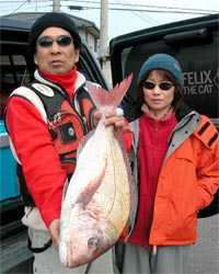 | 2月13日、森さんは自己記録更新の、81cm 6.4kgのマダイを見事に仕留めた。 |