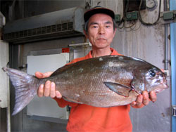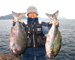 | 2月19日、上五島にて越知さん、最大55cm 2.3kgのオナガをゲット! |
