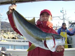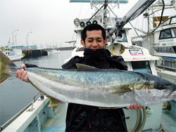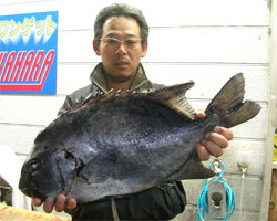 3月11日、男女群島にて平河さん、65.0cm 3.75kgの見事なオナガを仕留めた。 |