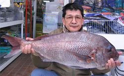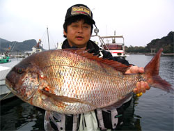 3月24日、大分市沖にて広畑さんは、81.0cm 5.9kg の見事な大物マダイを仕留めた。 |