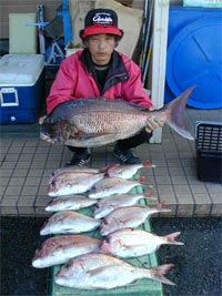 3月22日、奈良の中村さんは、5.5kgと2.6kgのマダイを連続ヒット!! |