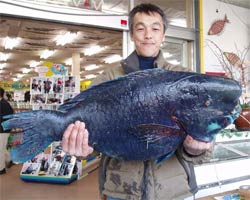 3月13日、森さんは南郷前島にて、午前11時に餌はガンガゼで、大型青ブダイを釣り上げた。サイズは