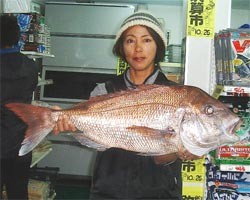 3月16日、蒲江の畑ノ浦波止にて、大分の女性釣り師さんは、チヌ 58cm 3.5kgを見事仕留めた。ウキ止めなしのG2ウキで付け餌と同調の結果です。とのことです。 |