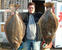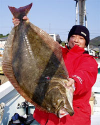 3月26日、古園さんは、9.8kgの大物ヒラメを見事ゲット! |