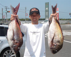 5月2日、沖磯にて福西さんはマダイ78cm 6kgラクラクオーバーとスズキ2.8kg をルアーでGET!