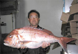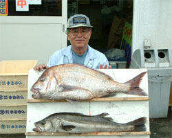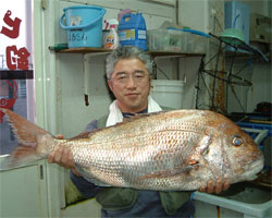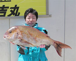 5月31日、春日さん、生月島にて、89.0cm 8.7kgの大物マダイを見事ゲット! |