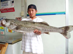 7.26kgの特大スズキを見事にゲット!こんな大物30年釣具店を営んでいますが初めて出会いました!(つりよし店主)。
