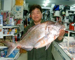 5月5日、深田さんは畑の浦にて、85cm、7.6kgのマダイを見事釣り上げた。 |