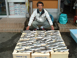 5月15日、有場さんグループは、47.5cm 1.65kgを頭に54匹ものチヌを大漁釣果! |