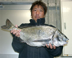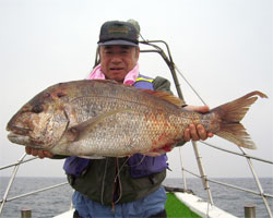 5月5日、頭ヶ島にて尾崎さんは6.0kgのマダイを見事釣り上げた。 |