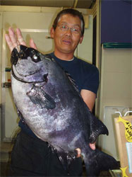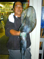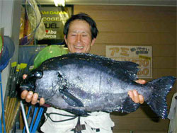 5月14日、底物釣り名人の佐伯さんはガンガゼをえさに63cm 4.6kgの大型石鯛を手中に!さすがです! |